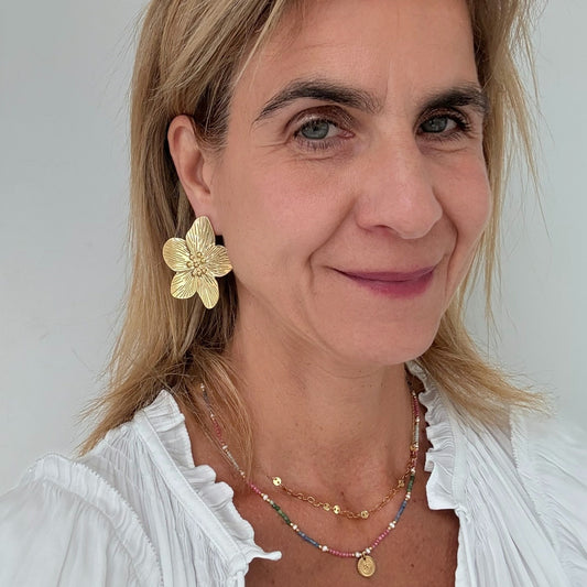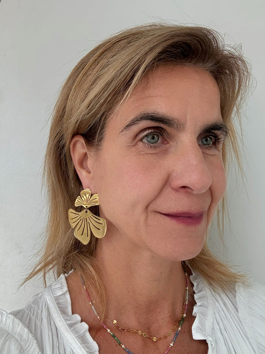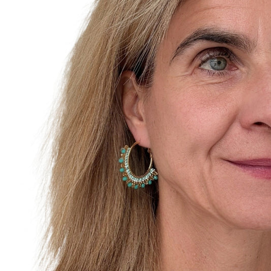 Gold Earrings with Sky Blue Quartz Clover Charms