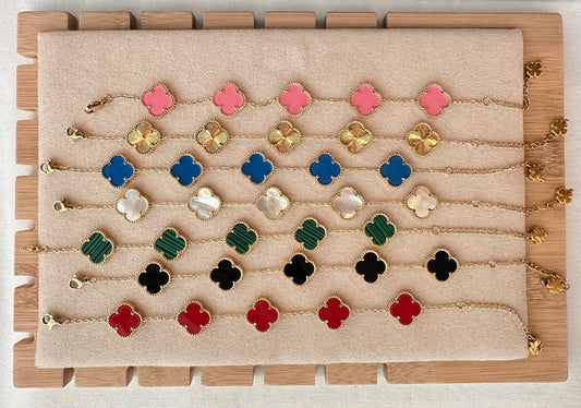 Bracelet with Five SMALL Clovers in White Mother of Pearl Style