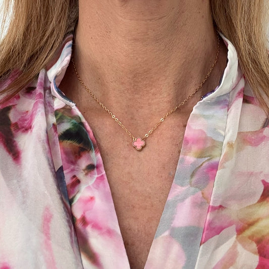 Necklace with Single Clover Charm in Pink
