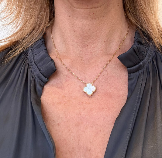 Necklace with Single Clover Charm in White Mother of Pearl