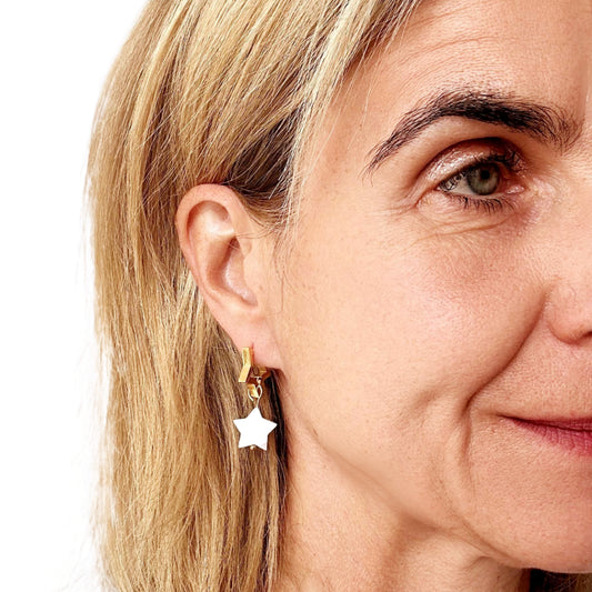 Huggie Rainbow Hoop with Clover Charm in Mother of Pearl
