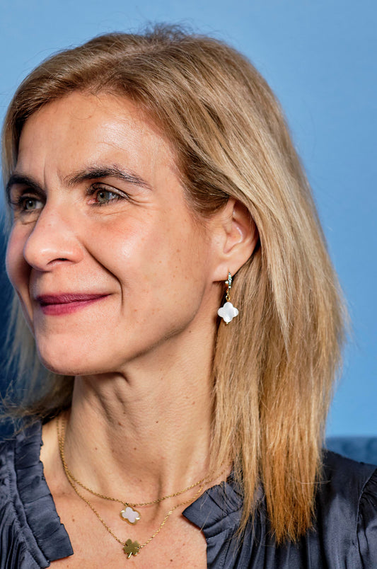 Pearl Studs with Large Clover Mother of Pearl Charms