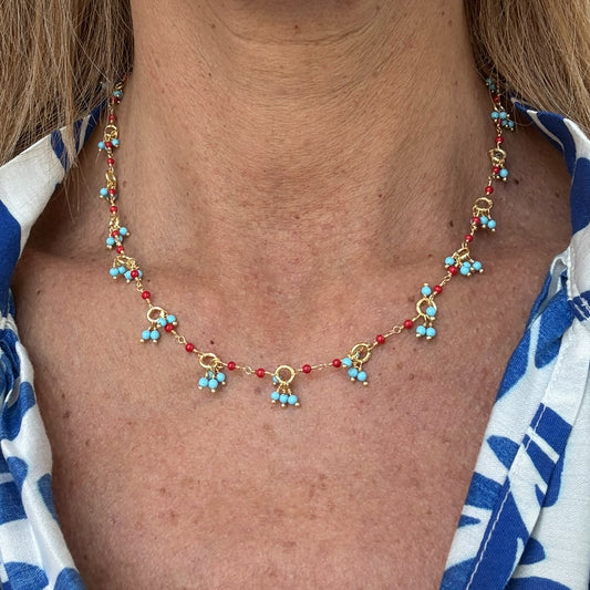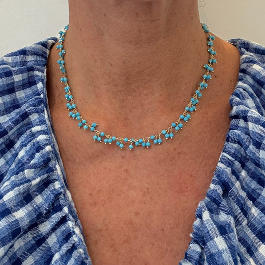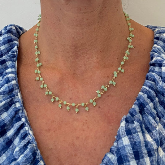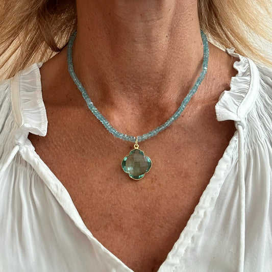 Gemstone Necklace with Apatite All Around and Clover Charm