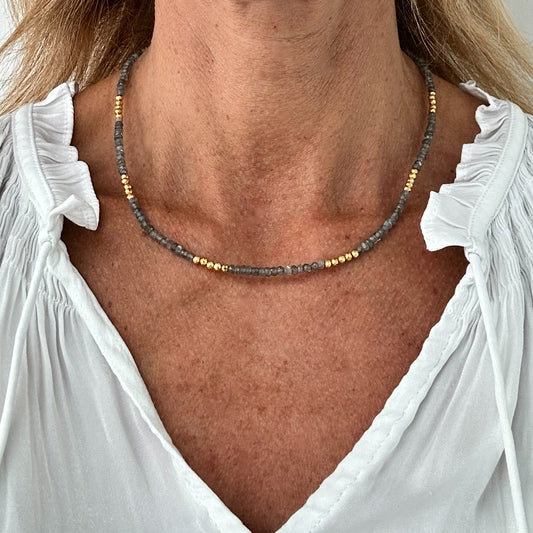 Gemstone Necklace with Labradorite and Golden Pyrite