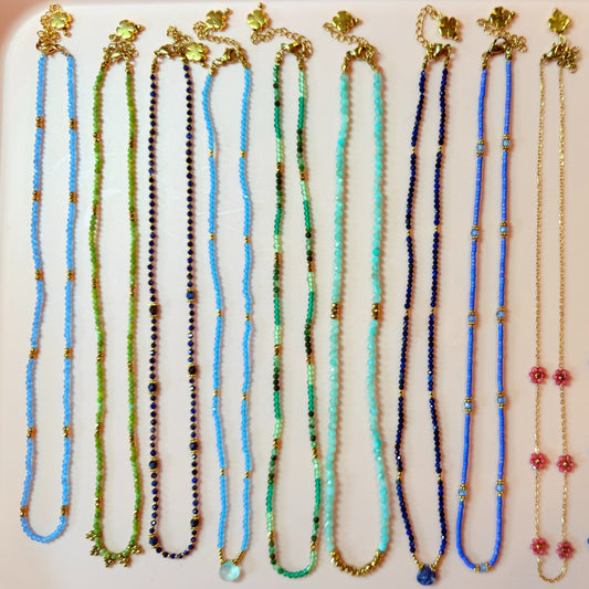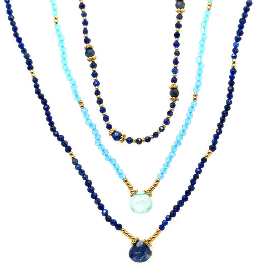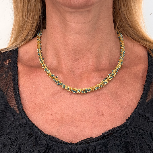 Necklace with Blue, Turquoise & Gold Beads