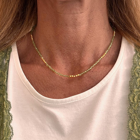 Gemstone Necklace with Peridot and Golden Pyrite
