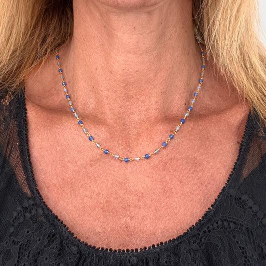 Sold outRosary London Blue Topaz Necklace with Small Gold Clover Charms
