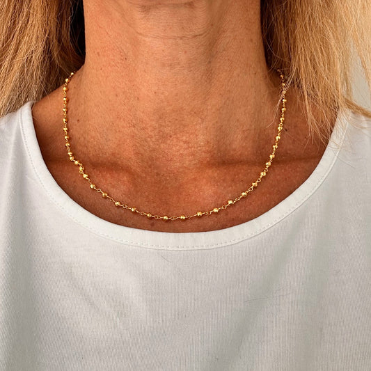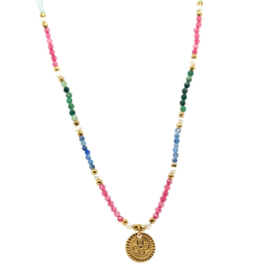 Necklace with Tiny Multicoloured Beads & Gold Flowers