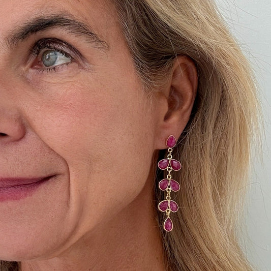 Gold Hoops with Pink Gemstone Charms
