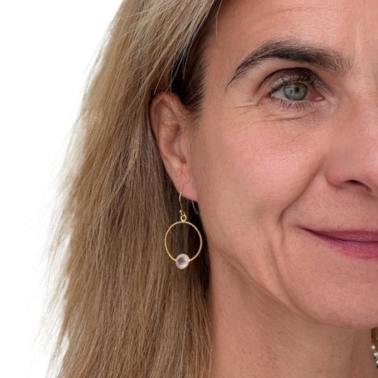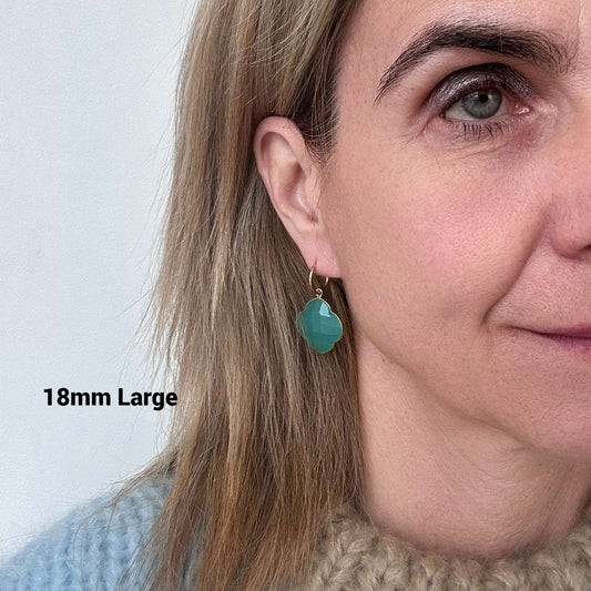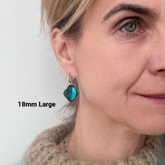 Gold Hoop with Aqua Hydro Quartz Clover Charm