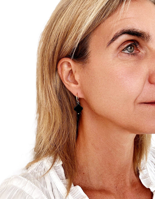 Sold outGold Earrings with London Blue Quartz Clover Charms