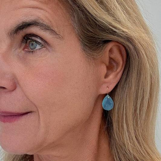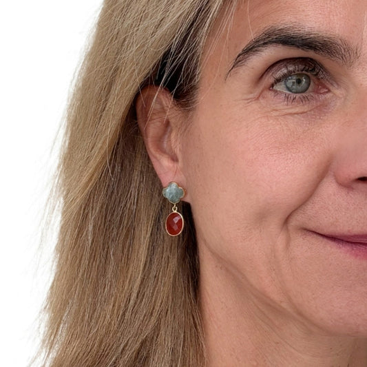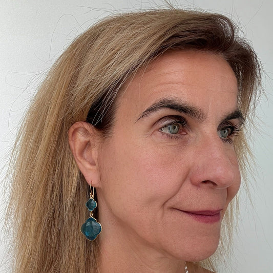 Gold Earrings with Sky Blue Quartz Clover Charms
