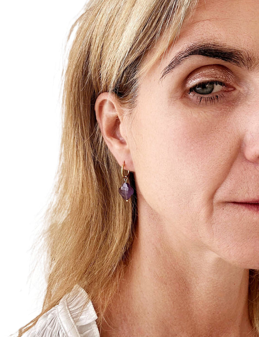 Sold outGold Hoop with Amethyst Teardrop Charm