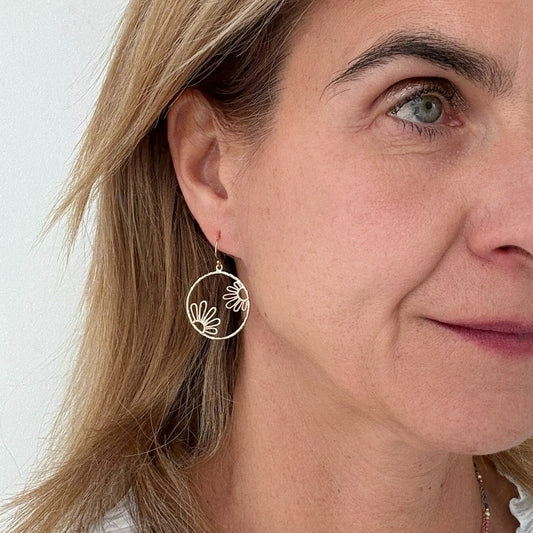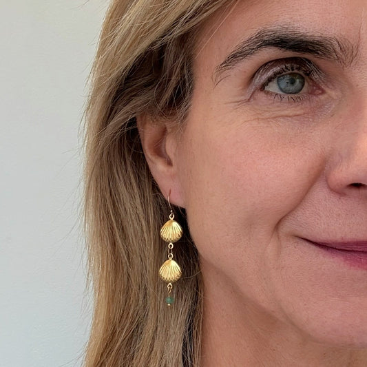 Earrings with Gold Shell Charm & Freshwater Pearl