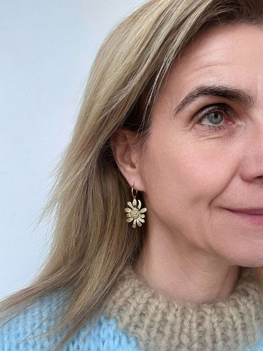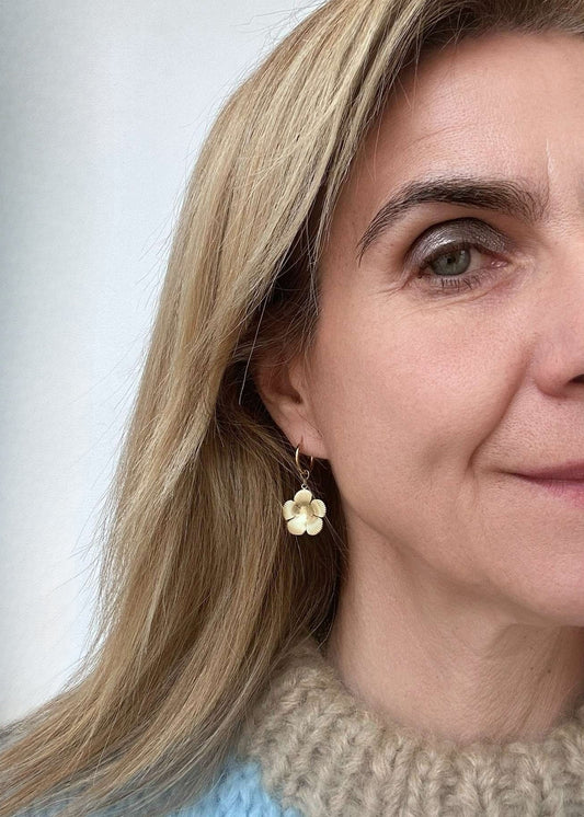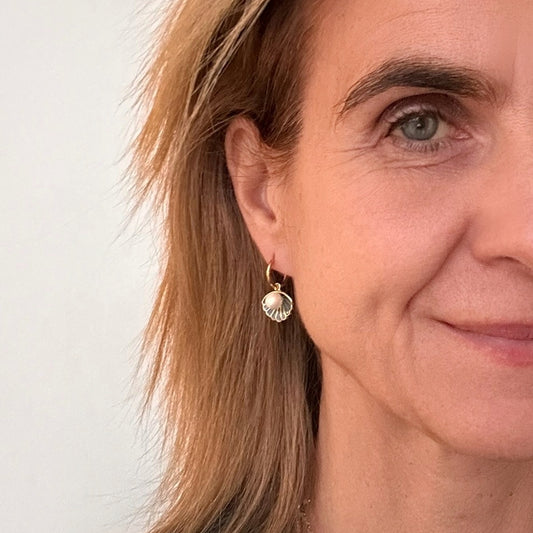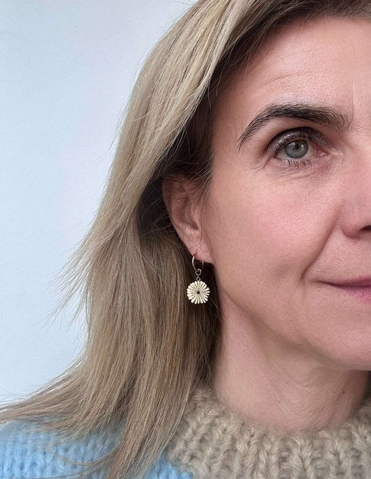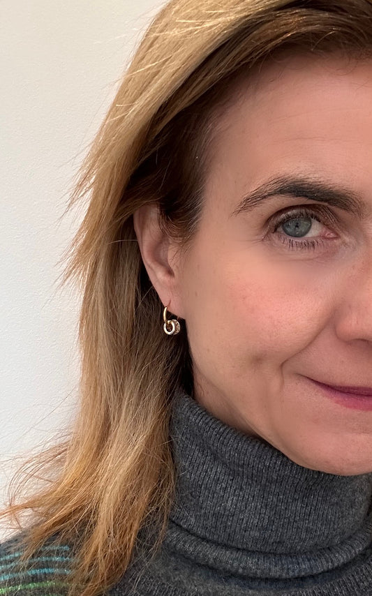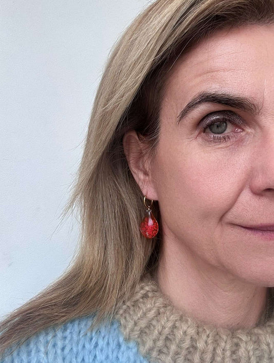 Gold Hoop with Murano Glass Orange Teardrop Charm