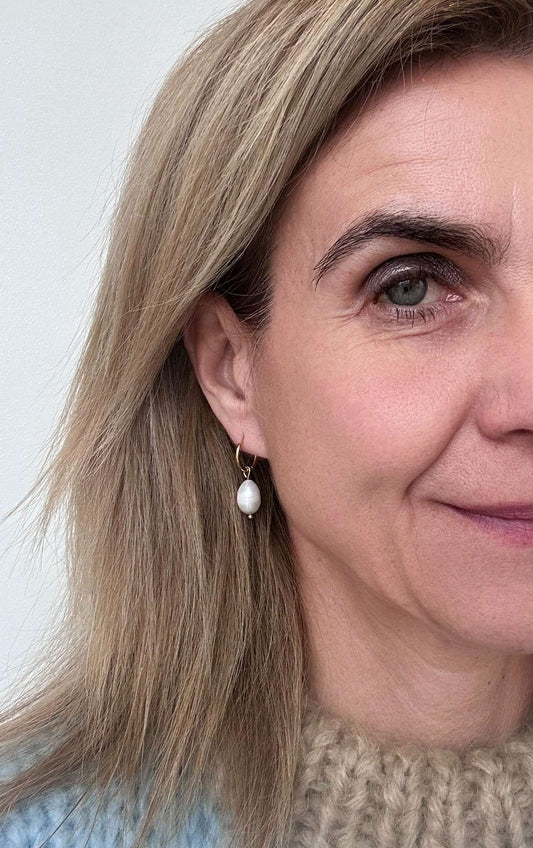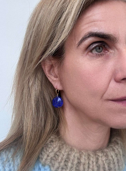 Gold Hoop with Murano Glass Light Blue Teardrop Charm