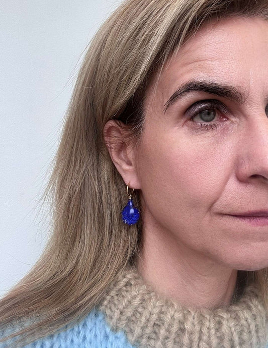 Sold outGold Hoop with Murano Glass Royal Blue Teardrop Charm