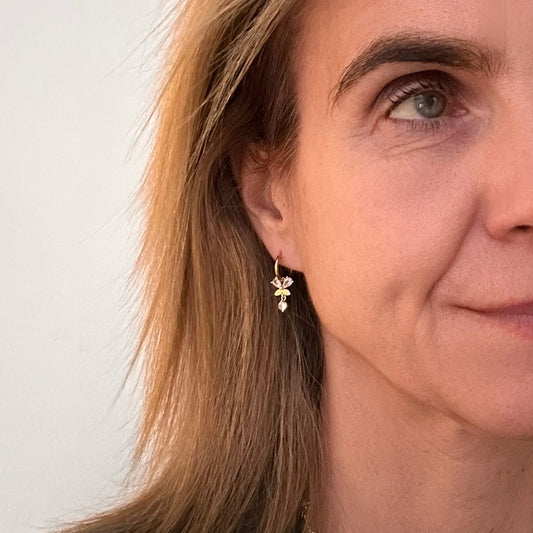 Gold Hoop with Sparkly Butterfly and Diamond Charm