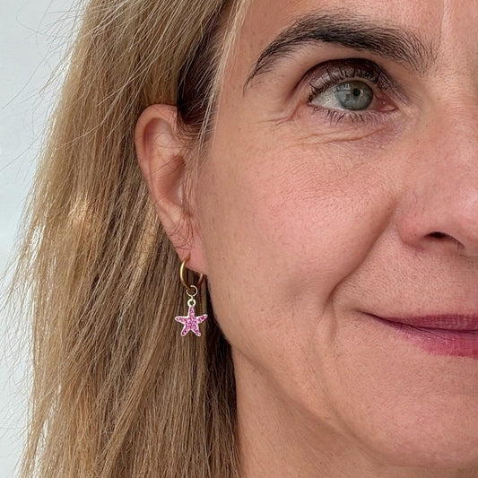 Gold Hoop with Pink Starfish Charms