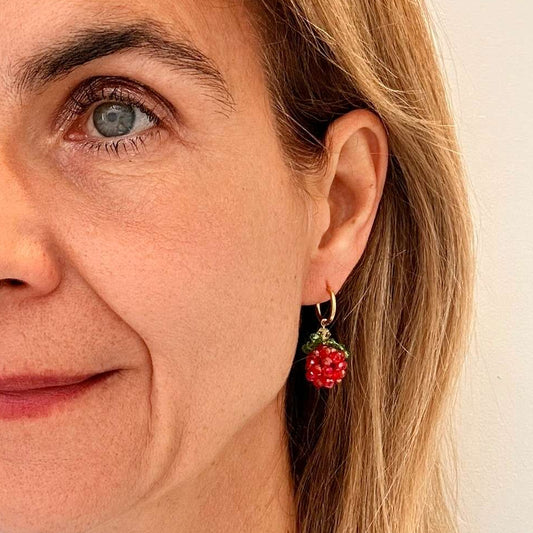 Gold Hoop with Raspberry Charms
