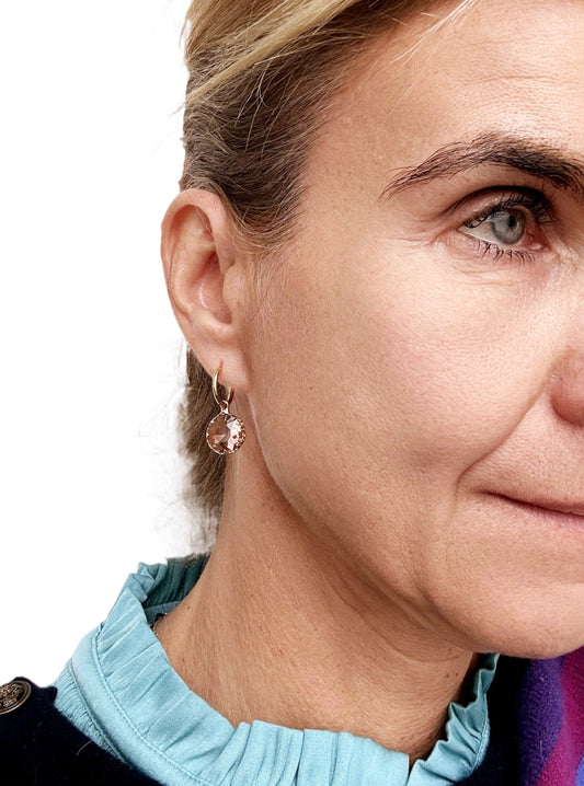 Gold Hoop with Pink Round Crystal Charm