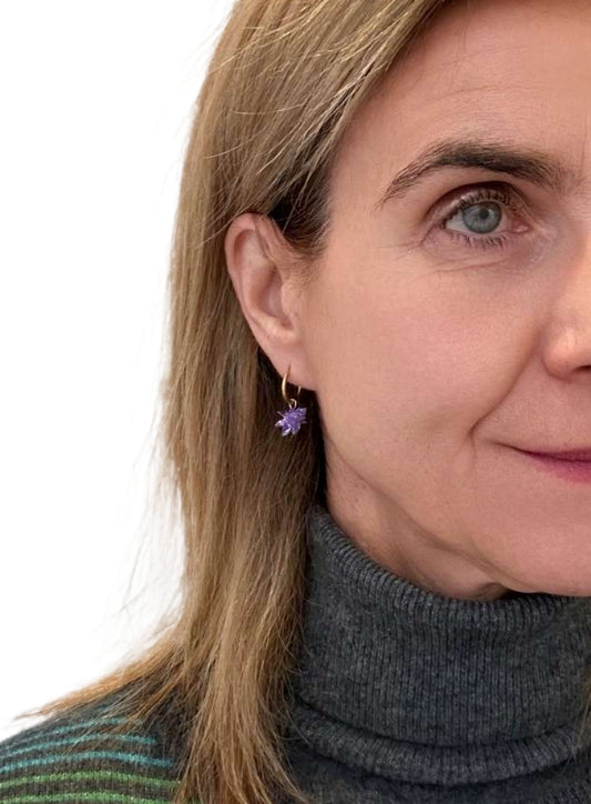 Gold Hoop with Purple Crystal Flower Charm