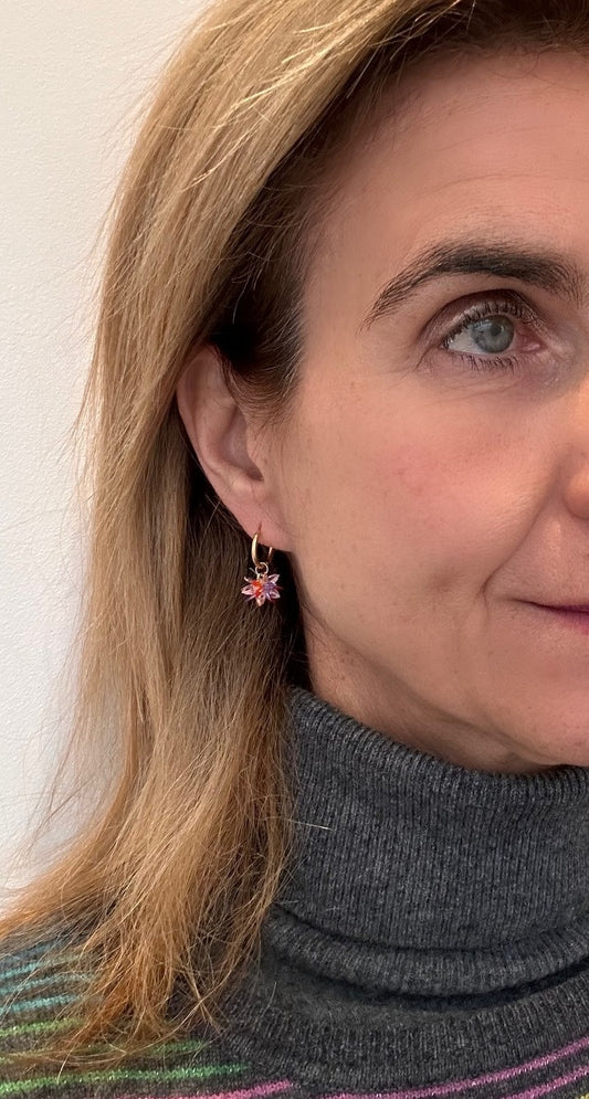 Gold Hoop with Rainbow Crystal Flower Charm