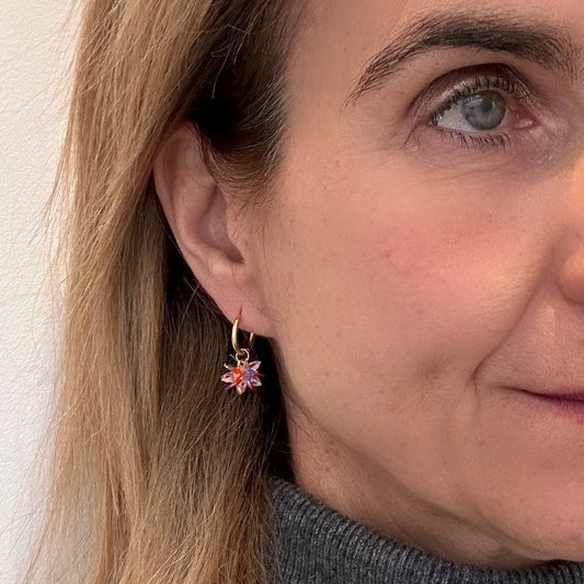 Gold Hoop with Murano Glass Orange Teardrop Charm