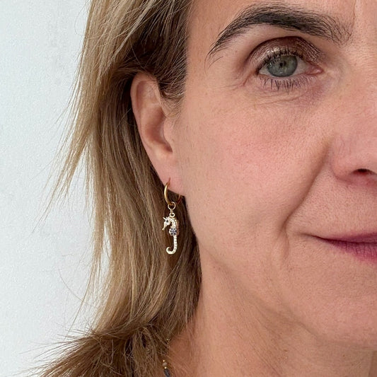 Gold Hoop with Seahorse Charms