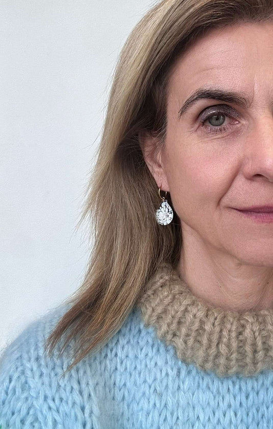 Gold Hoop with Murano Glass White Teardrop Charm