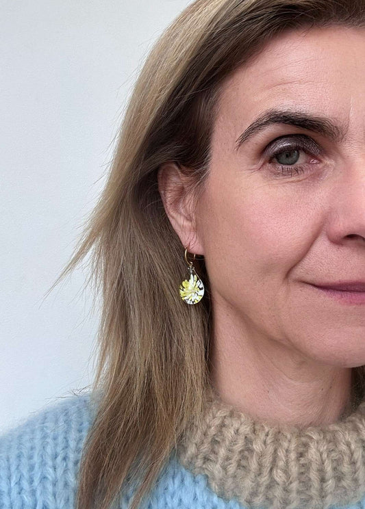 Gold Hoop with Murano Glass Yellow Teardrop Charm