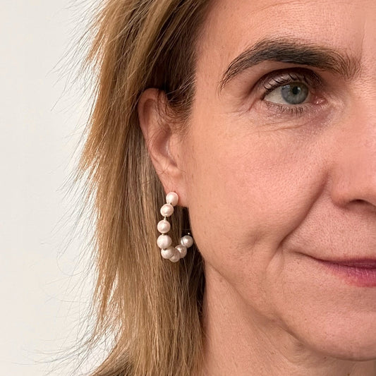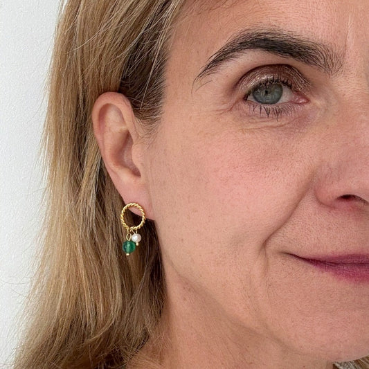 Twisted Circle Earrings with Pearl and Green Agate Beads
