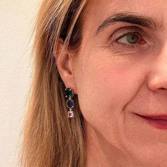 Green/Blue/Pink Dangling Crystal Studs