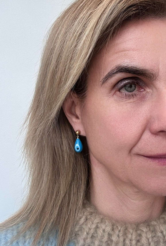 Gold studs with Light Blue Evil Eye Charms