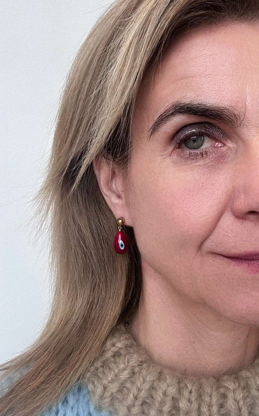 Gold studs with Red Evil Eye Charms