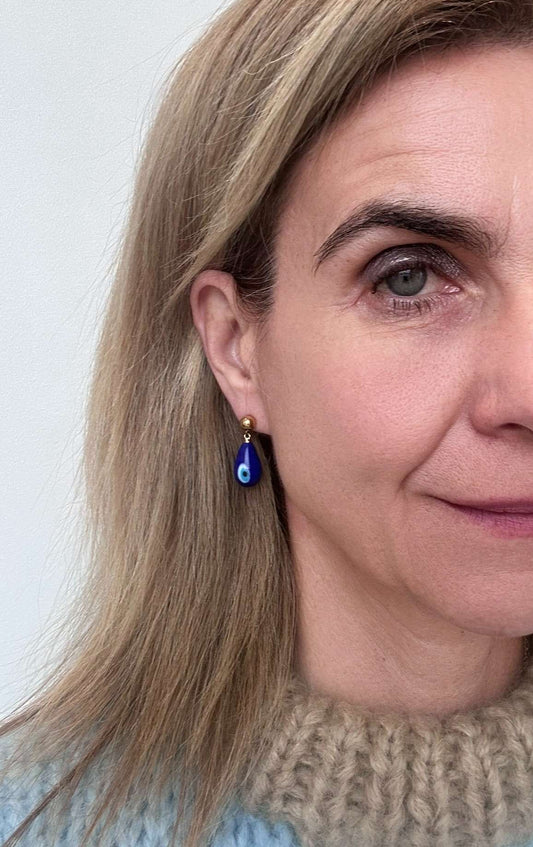 Gold studs with Royal Blue Evil Eye Charms