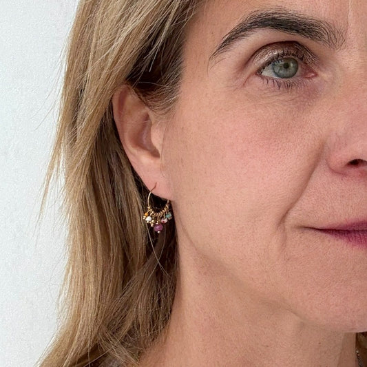 Thin Medium Hoops with Rainbow Beads