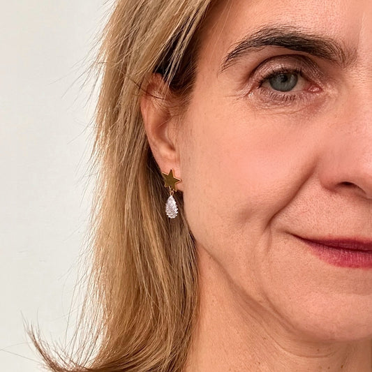 Star Studs with Dangling Crystal