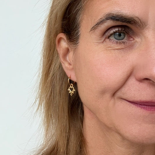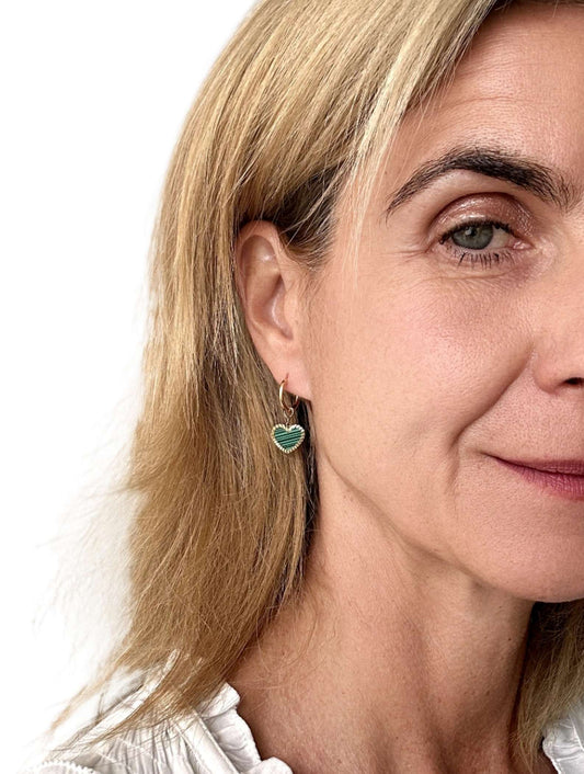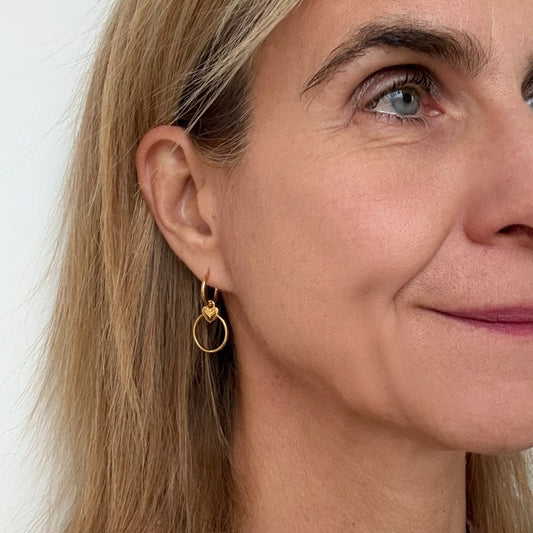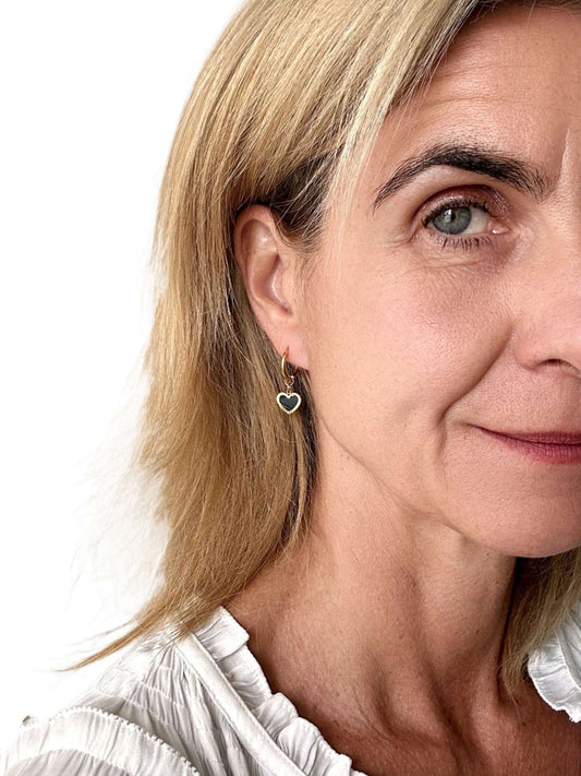 Gold Hoop with Heart Mother of Pearl & Gold Charm