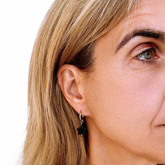Gold Hoop with Small Mother of Pearl & Gold Heart Charm