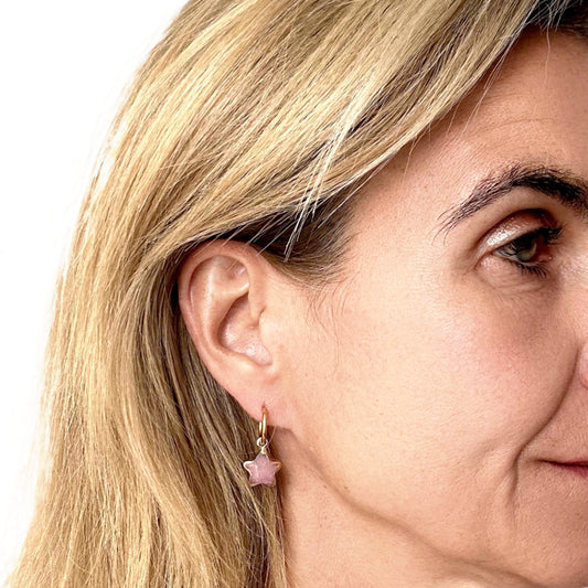 Gold Hoop with Nesting Hearts Charm in Pink/Purple