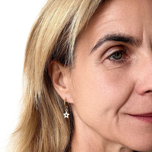 Gold Hoop with Turquoise Blue Enamel Heart Charm