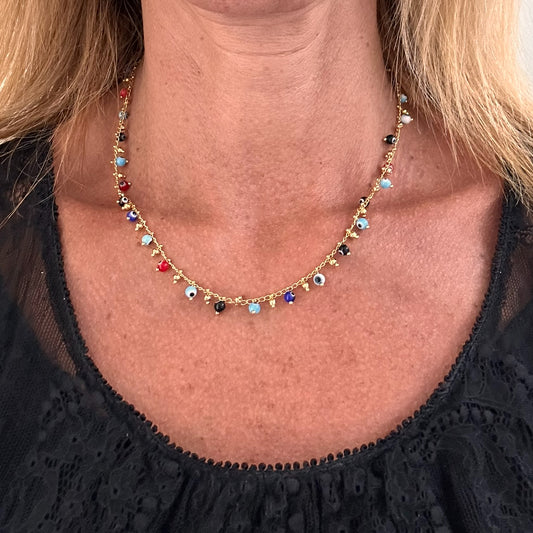 Rosary Necklace with Evil Eye Charms