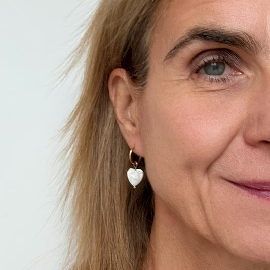 Gold Hoop with Heart Mother of Pearl & Gold Charm