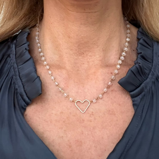 Rainbow Beaded Necklace with Sparkly Heart Charm