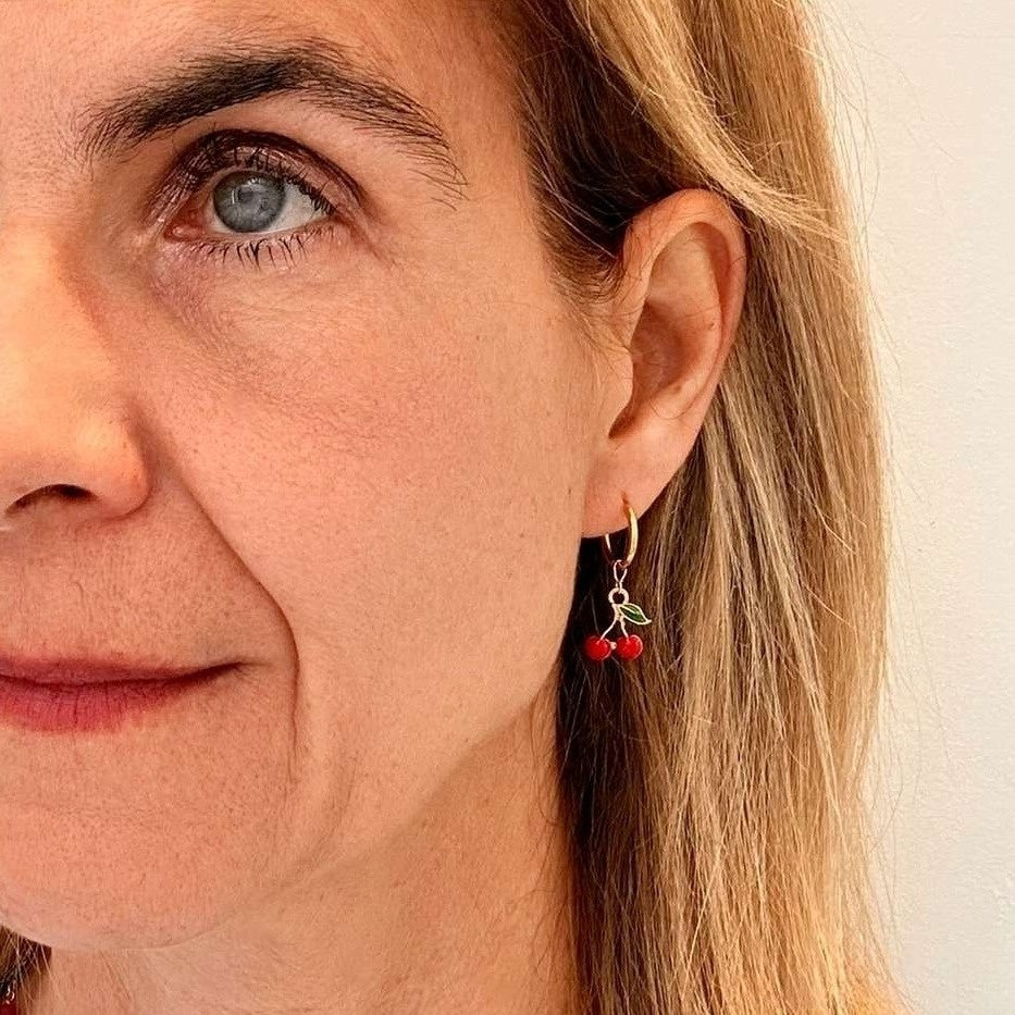The hoop diameter is 13mm and charm size is 13mm with total drop of 26mm. Gold plated stainless steel which is nickel free and hypoallergenic.