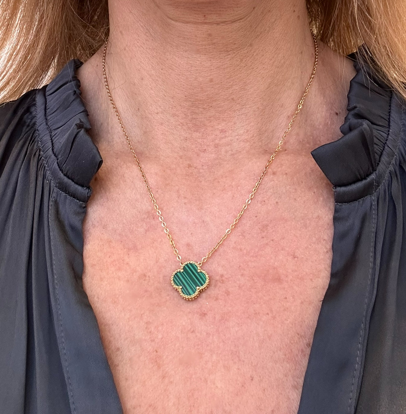 Necklace with Single Clover Charm in Green